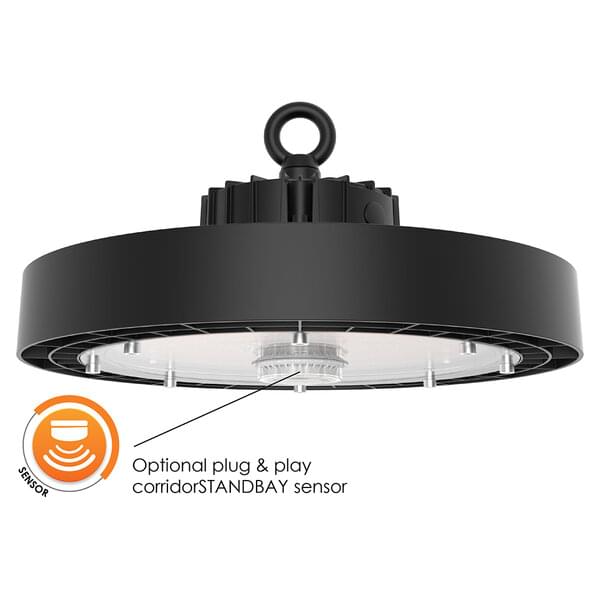 This super low profile LED highbay has it all, including integral control gear, flex and plug for faster installation, superb optical performance >160lm/W at 4000K CCT, 1-10V dimming performance and an optional plug and play corridorSTANDBAY sensor function.