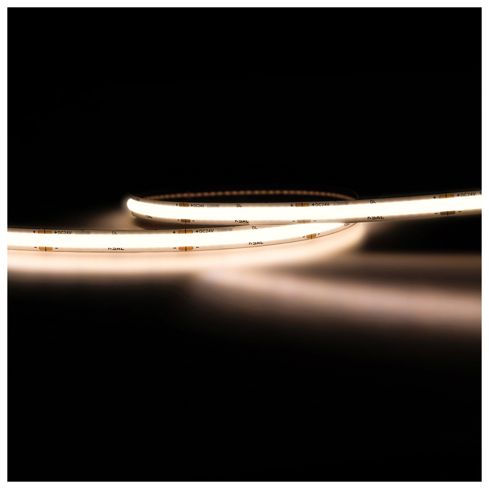 5m roll, COB single colour, high output CRI90, 20W/m, IP20, strip width 10mm.