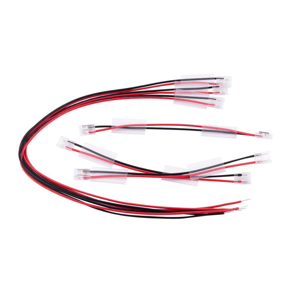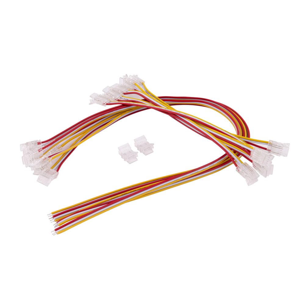 • FLC10RGB/KIT - strip joiner with 150mm flylead x 2 pieces, strip connector with 400mm flylead x 2 pieces, heatshrink tube x 6 pieces to connect to 10mm COB RGB strip