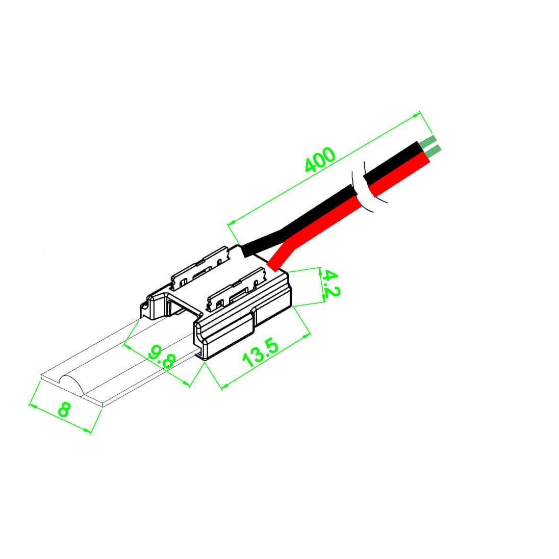 • FLC08KIT - strip joiner with 150mm flylead x 3 pieces, strip connector with 400mm flylead x 3 pieces, heatshrink tube x 9 pieces to connect to 8mm COB strip